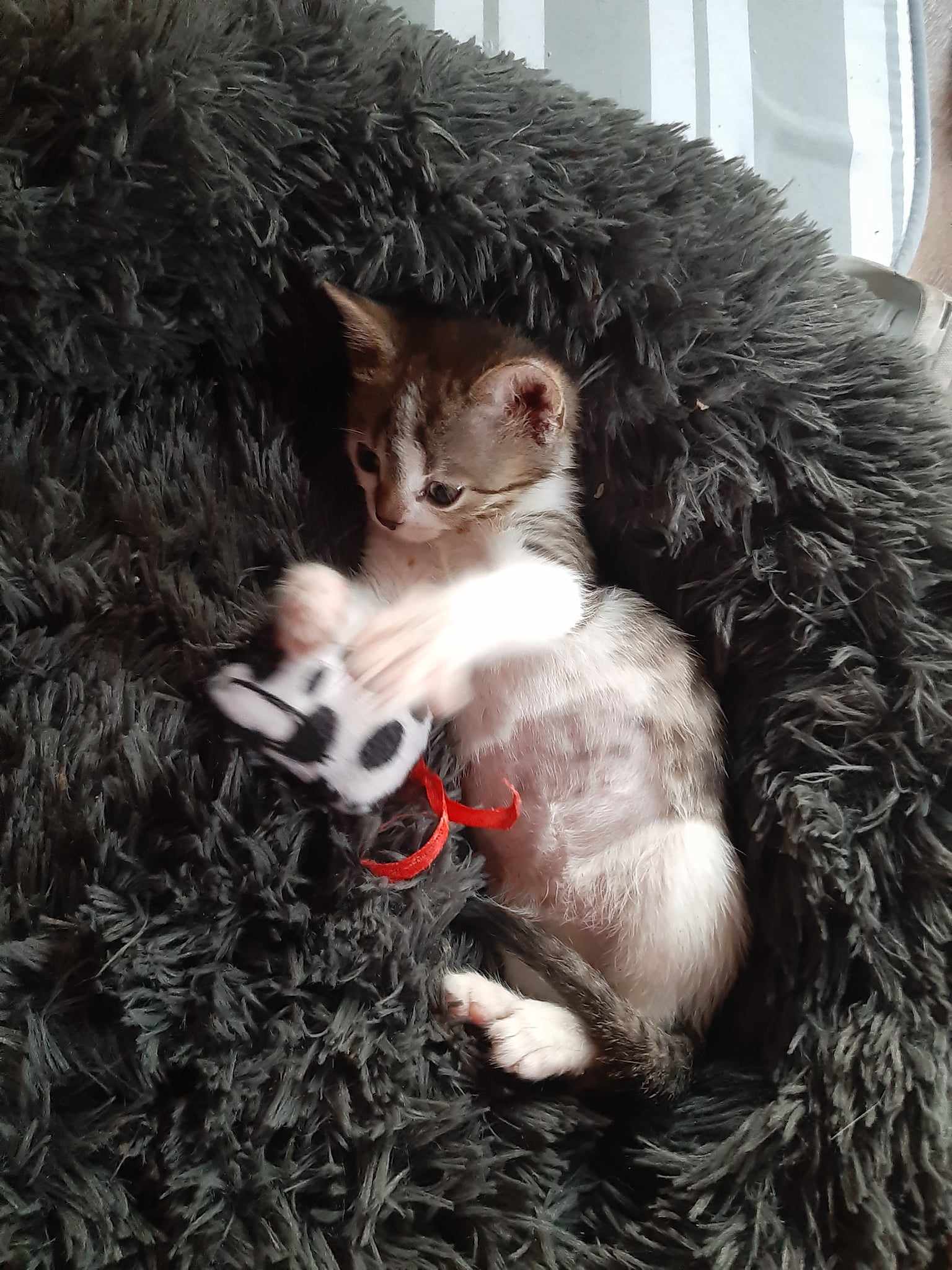Johanka je nádherná, veselá holčička, která ale prochází těžkým, životním obdobím a evidentně si od samého začátku vylosovala černého Petra. Její trable začaly, když bylo viditelné, že se z ležícího kotěte má stát batole, lezec a pak i veselý běhálek, ale nestalo se tak. Johanka začala mít nespecifické neuroproblémy, které jí vážně omezují v pohybu a neudrží se rovně na nožičkách a padá. Oproti tomu je ale při chuti, krásně papá, v leže si hraje - v této pozici vypadá jako zdravé kotě - a v očích má čertíky, které svědčí o tom, že její stav není bolestivý, ale že si strašně moc přeje zažít běžnou hru se sourozenci a poznat to, čemu se říká pohyb bez omezení.