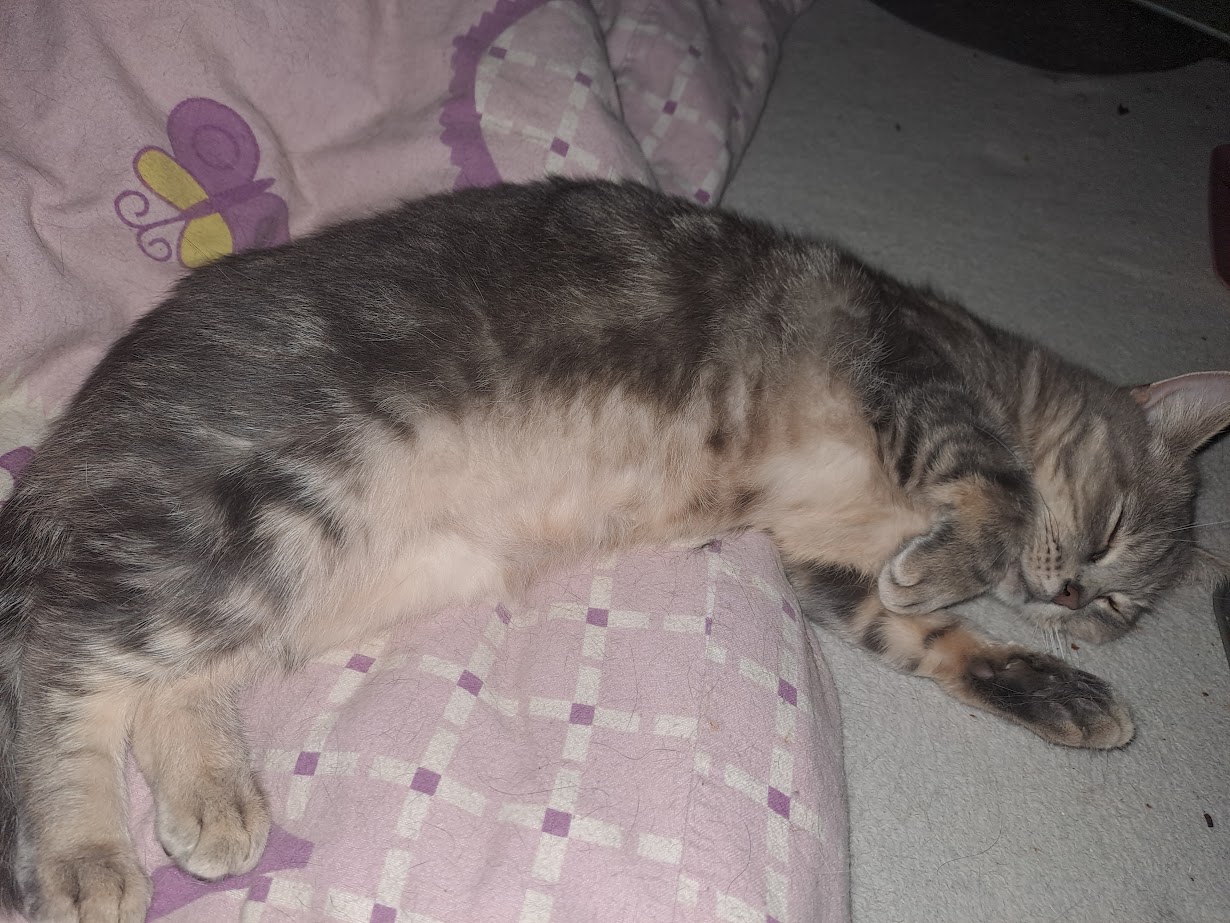 6.2.2025 dnes je to 49 dní léčby , když přijedeme domů nají se a jde si odpočinout je unavená 😘když se probudí tak se trochu projde pomazlí a jde zase spát.😘 Váha je stejná 2,80 kg tak nevím nějak se nám ta váha sekla nepřibírá uvidíme co bude dál. Je statečná a moc šikovná zlatíčko moje😘