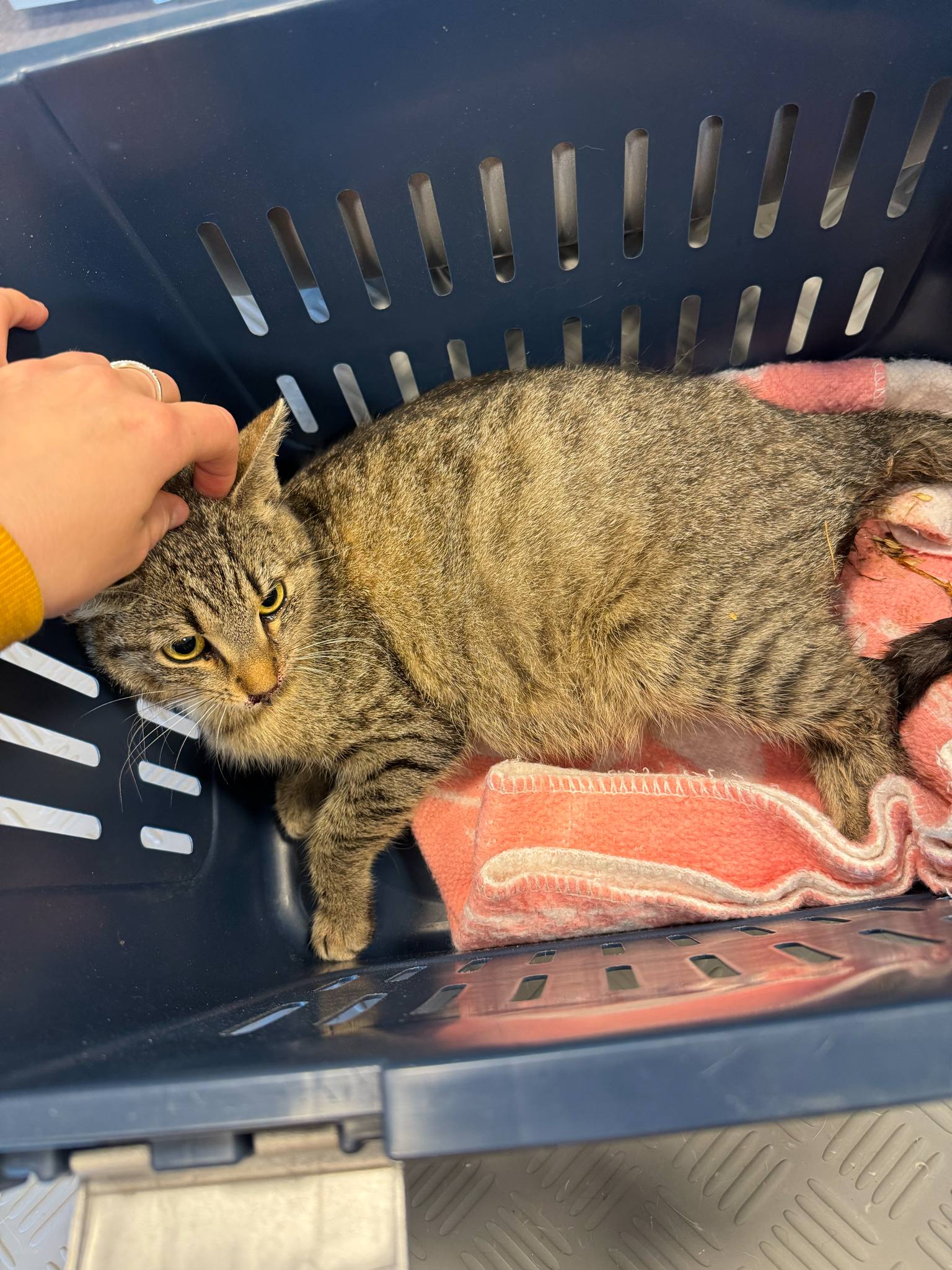 Poly je starší kočička z Králova Pole, která byla nepravidelně krmena, ale nedostalo se jí komplexnější péče. Dostala se k nám silně anemické a infestovaná škrkavkami a blechami. Aby toho nebylo málo, uvnitř zažívacího traktu měla tvrdý předmět, pravděpodobně kamínek. Poly se k nám dostala pozdě, zdecimované tělíčko vypovědělo službu.