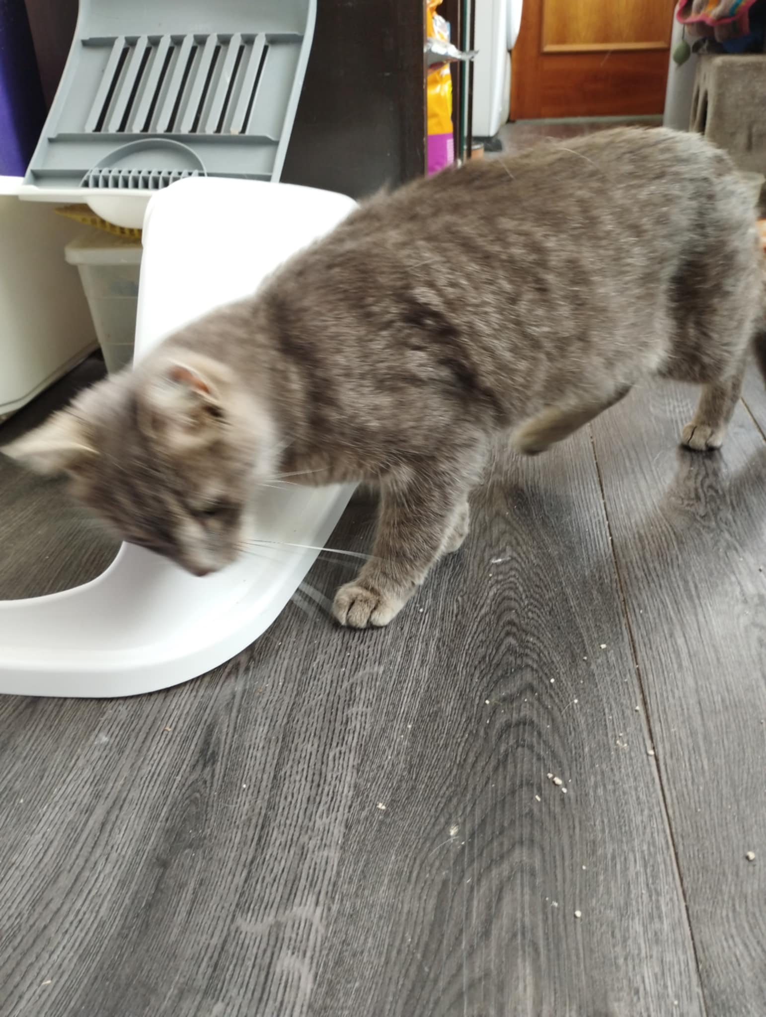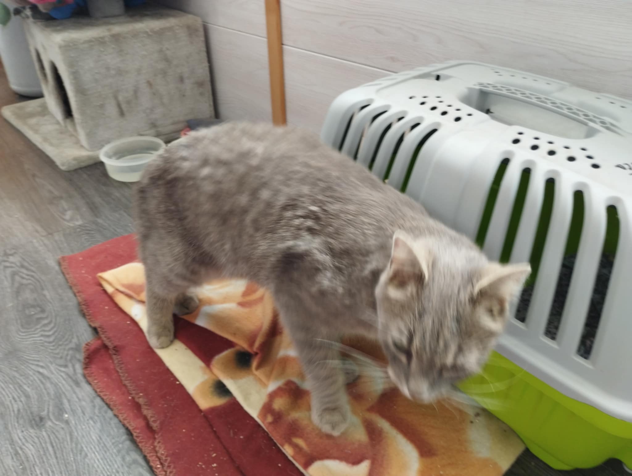 Kocourek je docela zanedbaný a špinavý, a přestože mu lezou obratle, je docela statné konstituce a nijak extra pohublý. Pokud byl někde někým krmený, tak určitě nedostával komplexní péči, protože má zahnisané oko a dezolátní zuby (jeden špičák uražený, druhý skoro černý). Je nekastrovaný a v jednom uchu má svrab. Co je ale horší, tak že se snaží ulevovat zadním nohám - při prohmatání to vypadá na přetržený vaz nebo totální luxaci pately. K tomu klopí hlavu na stranu a chodí trochu nemotorně. Více ukáže vyšetření s rengeny, ale je docela možné, že v minulosti prodělal nějaký větší úraz (může to ale také být větší zánět nebo polyp v uchu). Zítra jsme objednaní na komplexní vyšetření a úřad městské části nám slíbil vyhlášení nálezu. Jakmile budeme vědět více, budeme vás informovat.