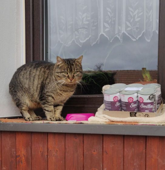 V současné době se starám o třináct koček svých a pět tuláků, kteří chodí pravidelně na jídlo, a zřejmě i další kočky, které chodí v noci. Kočky se snažím kastrovat, zbavovat parazitů a léčit v rámci svých možností. Na některé kastrace přispělo Feliti. Za to jim moc děkuji, stejně tak i za potravinové dary.