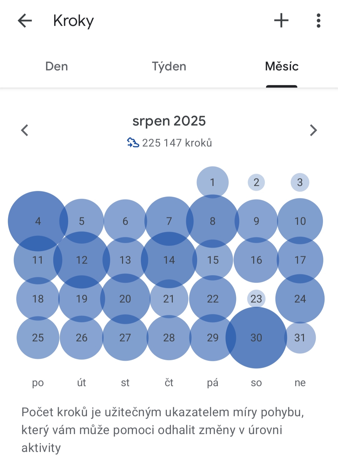 Moc děkuji všem, kteří podpořili tuto výzvu! Nakonec jsem ušla v posledním týdnu 53 306 kroků. Dohromady za ty čtyři týdny tedy 217 678 kroků a za celý srpen pak 225 147 kroků. Chůze je skvělý relax i pohybová aktivita zároveň, takže v ní pokračuju a teď budu přidávat další zátěžovější sportovní aktivity.