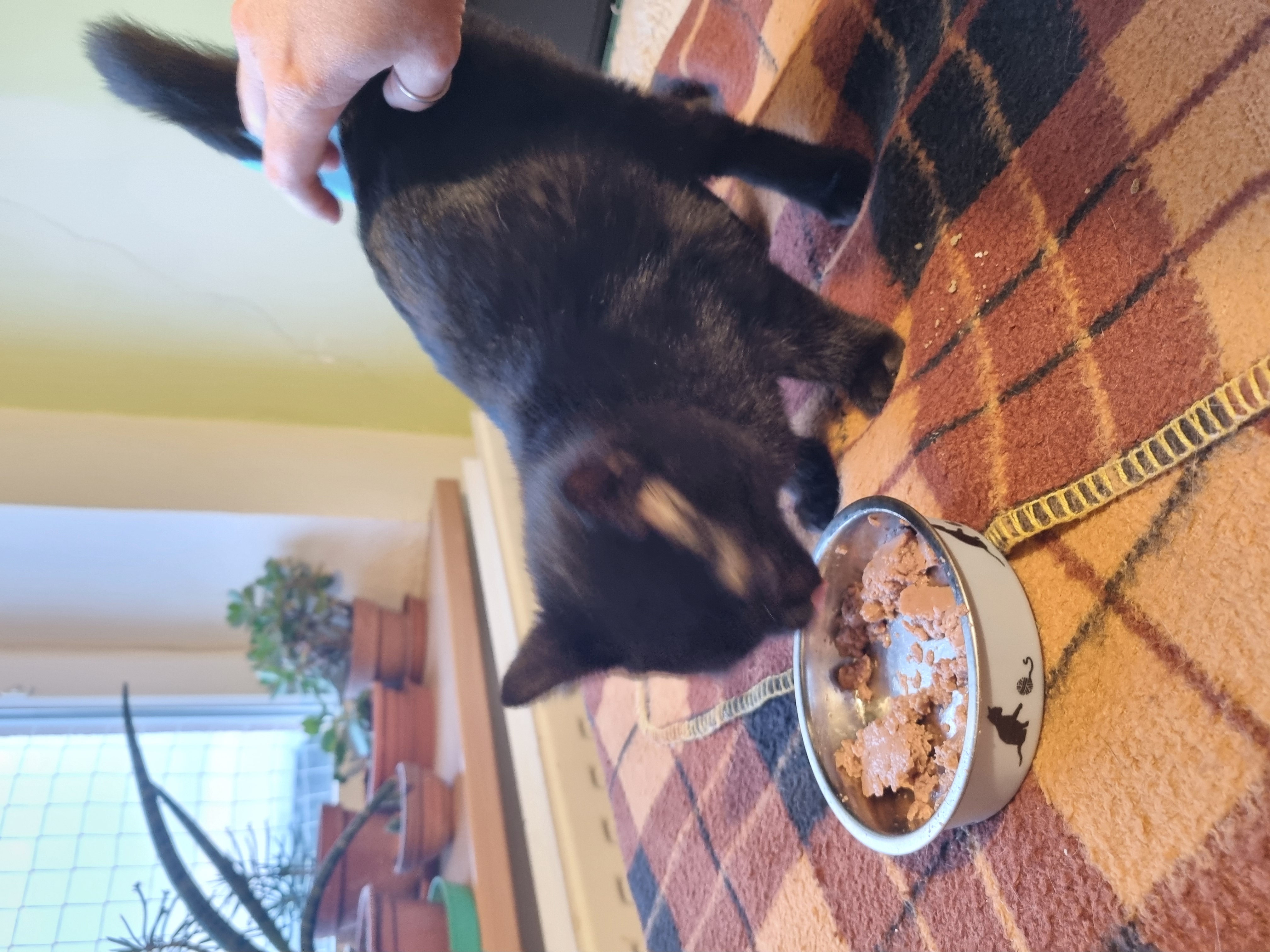 Černé koťátko, chlapeček ze hřbitova, má zdeformované horní víčko pravého oka a má řasy vpáčené do oka, takže bude muset podstoupit operaci, aby mohl oko plnohodnotně používat. Tuto operaci bychom rádi financovali z vybraných prostředků. Měl také silný průjem, ale to již podařilo vyřešit a je to až na handicap s okem šťastné kotě🥳.