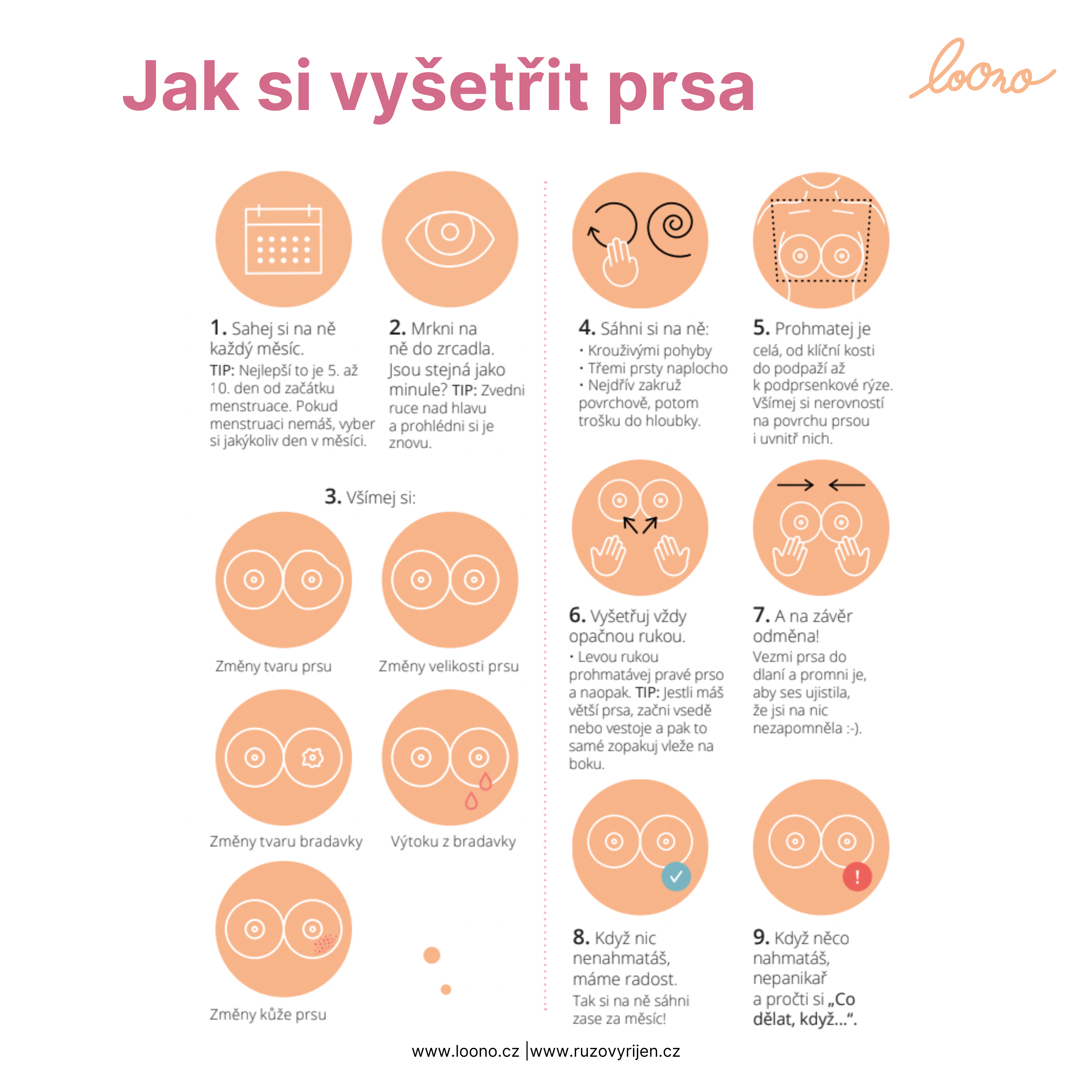 A proto v rámci kampaně Sahám si na ně každý měsíc #prsakoule již 11. rokem učíme širokou veřejnost, jak správně provádět samovyšetření, jaké screeningové programy jsou v Česku dostupné a jak pečovat o své zdraví. Naše kampaň oslovila již miliony Čechů a díky tomu jsme zachránili již nejeden život. Je tedy důležité v tom pokračovat i nadále! Pomoz nám v šíření prevence i Ty. Staň se dárcem a podpoř zdravá prsa! https://www.loono.cz/ruzovy-rijen