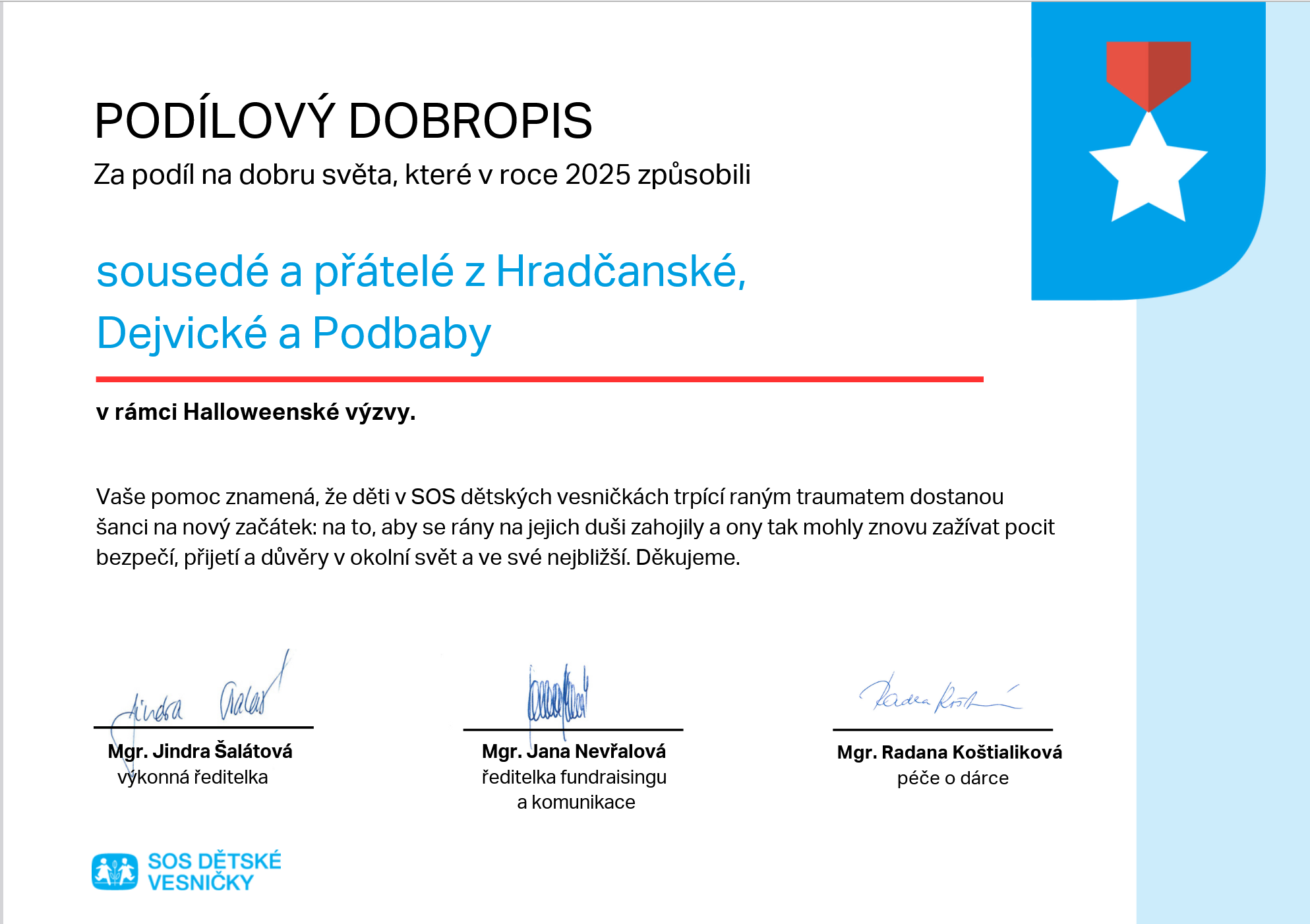 Děkujeme za sousedský Halloween i smysluplnou sbírku <3