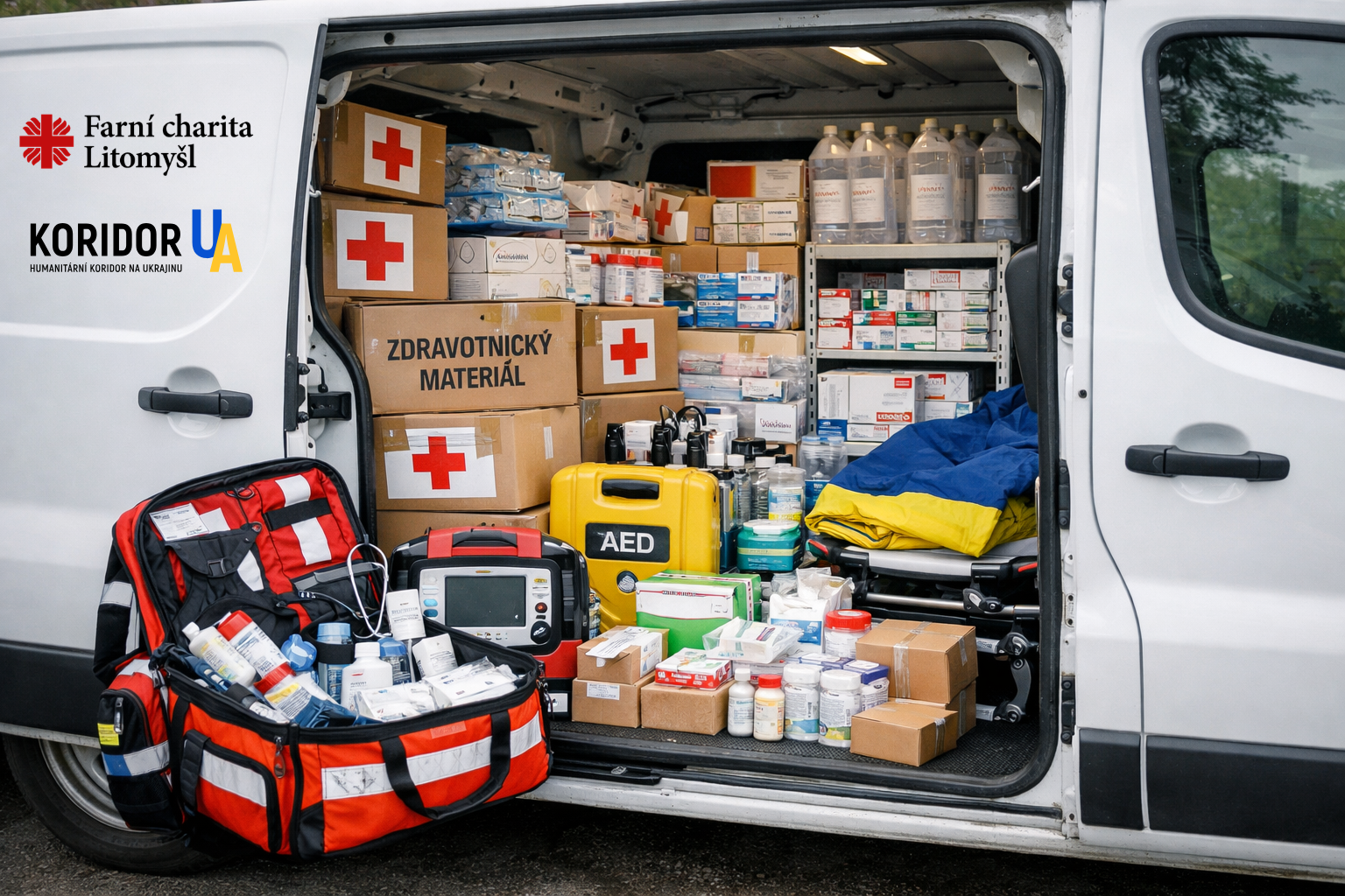 Farní charita Litomyšl a Koridor UA spojili síly, aby společně naplnili dodávku Koridoru UA zdravotnickým materiálem pro mediky v Charkově, kteří každý den zachraňují lidské životy v extrémně náročných podmínkách.
