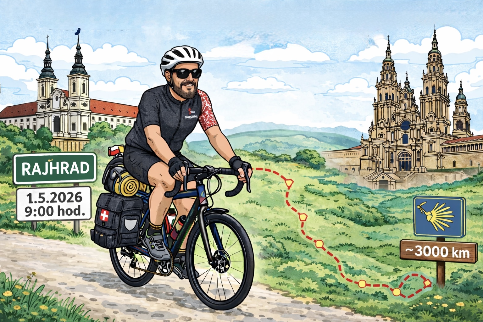 Je to má zatím nejdelší naplánovaná cesta (cca. 3000km). Svoji cestu zahájím 1.5.2026 v 9:00 hod. u Opatského chrámu sv. Petra a Pavla v Rajhradu. Každým otočením pedálu vás na dálku povedu podél evropských veletoků a alpských jezer až do slunné Francie. Po náročném zdolání Pyrenejí se napojím na staletími prověřenou cestu králů a poutníků, která mě skrze španělské vinice a historická města dovede k branám katedrály Santiaga de Compostela. V cíli, u hrobu svatého Jakuba, patrona všech poutníků, mé fyzické vyčerpání vystřídá čistá radost z toho, že jsem se nevzdal a cestu dokončil. Svojí jízdou chci připomenout, že hospicová péče také není o 'vzdávání se', ale o maximální podpoře života v jeho nejkřehčí fázi.