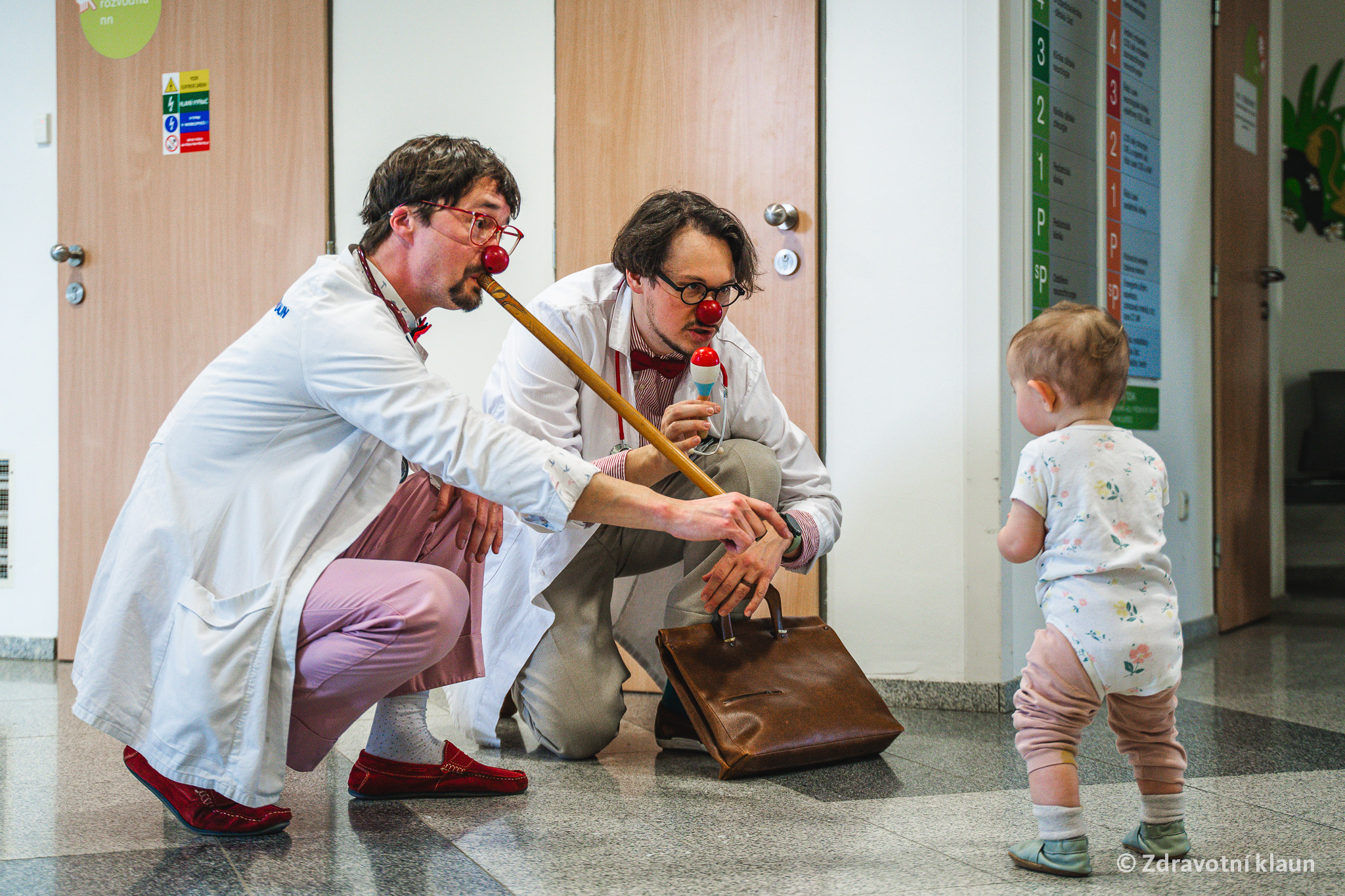 Zdravotní klauniáda představuje sérii krátkých improvizovaných interakčních představení u nemocničního lůžka o celkové délce 3 hodin, za které dvojice profesionálních Zdravotních klaunů projde všechny lůžkové pokoje na daných odděleních. Speciálně vyškolení Zdravotní klauni pozitivně působí na psychickou pohodu dětí i dospělých, a přispívají tak ke zlepšení celkového zdravotního stavu. Uvolňují stres a napětí a pomáhají malým pacientům lépe překonávat strach z neznáma i diagnózy.