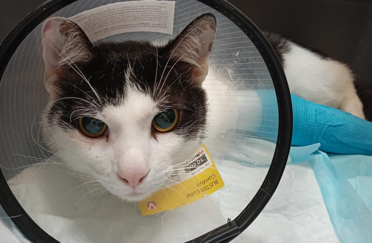 Kocourek vypadl z okna, měl zlámanou tlapku včetně prstíků.